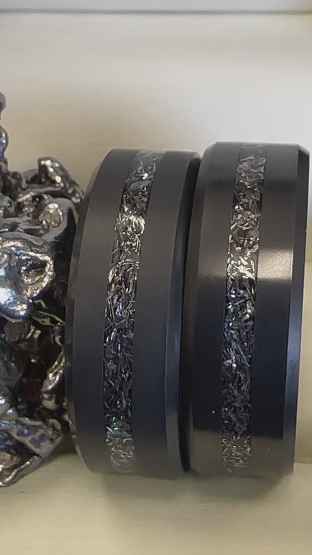 My fiance had looked at rings made from diamond dust and this ring did not disappoint! We picked out the one with meteorite inlay since it has extra sentimental meaning for him. He absolutely loves it! Thank you for making his ring so special to both of us!